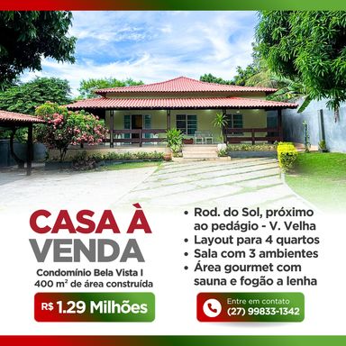 - Casa Colonial e Linear - Condomínio Bela Vista I. - A 25 minutos de Vila Velha, viva com mais espaço, tranquilidade e segurança! Harmonia com a natureza, conforto para sua vida. Sobre a casa: - Terreno com 1.200 m² de área - 400 m² área construída - 4 quartos - Sala com 03 ambientes - 03 Banheiros - Cozinha integrada a Sala - Gourmet com churrasqueira e fogão a lenha - Sauna - Escritura e Registro do lote - Valor do investimento: R$ 1.290.000,00 - Agende uma visita e descubra o seu novo lar. Aproveita e me segue no Instagram. - NENGER LIMA - (27) 99833-1342 - CRECI-ES: 12683/F - @nenger.corretor - www.nengercorretor.com.br
