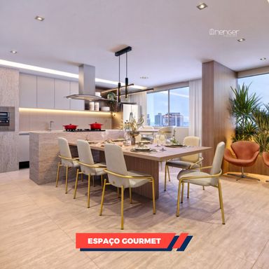 - Piso em porcelanato e laminado, rebaixamento em gesso, preparação para ar-condicionado split, preparação para aquecedor de passagem (gás) para fogão e chuveiros, duto para instalação de coifa e preparação para varanda gourmet (água, esgoto e energia).