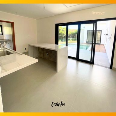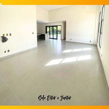-Sala de estar e jantar com pé-direito elevado e integração com cozinha, gourmet e área externa