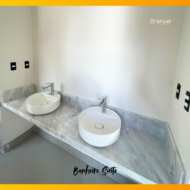 -3 suítes amplas, sendo 1 master com closet e banheiro com cuba dupla, ducha dupla e banheira
