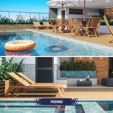 - Lazer na cobertura com piscina adulto, lounge piscina, sauna, spa, churrasqueira, espaço gourmet, fitness e banheiros.