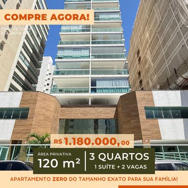 - Apartamento zero à venda, 120 m² - Praia da Costa - Vila Velha/ES Configuração: - Andar médio, posição lateral/fundos, sol da manhã e tarde; - Área privativa de 120m²; - 3 Quartos com suíte; - Sala de estar e jantar; - Varanda ampla e sem fechamento; - Banheiro social; - Cozinha ampla, área de serviço e dependência completa para prestador -e serviço; - 2 vagas de garagem cobertas; - Revestimento do piso em porcelanato, bancadas em granito, rebaixamento em gesso, sem iluminação decorativa, medidores de água e gás individual. - Condomínio oferece salão de festas, academia, brinquedoteca, churrasqueira, área externa vista mar, piscina com acessibilidade, solarium e sauna. Elevadores, sistema eletrônico portaria 24 horas e câmeras, garantindo a tranquilidade e a privacidade dos moradores. Bem-vindo à sua nova história. Bem-vindo ao seu novo lar!!! - Agende agora sua visita e viva essa experiência pessoalmente. - NENGER LIMA - (27) 99833-1342 - CRECI-ES: 12683-F - www.nengercorretor.com.br - @nenger.corretor