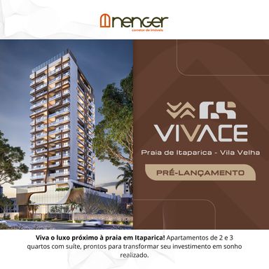 VENHA VIVER O SEU MAR DE SONHOS! Um mar de realizações, de oportunidades, de felicidade, de calmaria e boas energias. Você sonhou com tudo isso e chegou a hora de viver! Foi inspirado em tudo de bom que a contemplação do mar pode nos proporcionar, que a GS Construtora planejou o GS VIVACE. Aqui você vai viver os melhores momentos com quem você mais ama e recarregar suas energias, para que o seu dia a dia seja leve e o seu tempo precioso. Realize seu sonho e de sua família. Descrição do apartamento. - 2 Quartos com suíte e 54,78m² a 64,27m² privativos; - Sala conjugada de estar e jantar; - Varanda; - Banheiro social; - Cozinha com área de serviço; - 1 vaga de garagem; - Revestimento do piso em porcelanato, rebaixamento em gesso, preparação para ar condicionado split nos quartos, medidor individual de água e gás e infraestrutura para chuveiro com aquecimento a gás. Sobre o empreendimento: - O empreendimento conta com sistema de segurança 24 horas com porteiro, câmeras, garantindo a tranquilidade e a privacidade dos moradores. Acesso para PCD, elevadores e espaço para minimercado. - Lazer completo, equipado e decorado. Com piscina adulto, piscina infantil, solarium, SPA, sauna, fitness, churrasqueiras, podcast, salão de beleza, brinquedoteca, pub, salão de jogos, espaço gourmet, quadra de esportes, playground e salão de festas. Preço válido até 31/12/2025. Início das obras para segundo semestre de 2026. Prazo de entrega 48 (quarenta e oito) meses após o início da obra. - Avenida Luiz Manoel Vellozo, Praia de Itaparica, Vila Velha/ES. - Condições especiais para fechar agora – não perca essa oportunidade! PRÉ-LANÇAMENTO! Entre em contato agora mesmo. - NENGER LIMA - (27) 99833-1342 - CRECI-ES: 12683-F - www.nengercorretor.com.br - @nenger.corretor