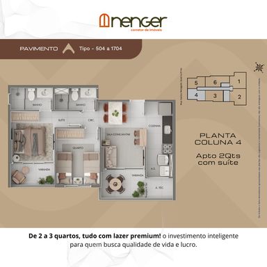- 2 Quartos com suíte e 54,78m² a 64,27m² privativos;