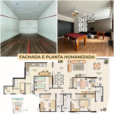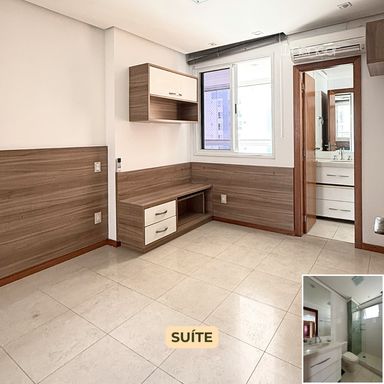 - Revestimento do piso em porcelanato, rebaixamento em gesso, banheiros com ventilação natural, ambientes climatizados, armários planejados nos quartos, cozinha, área de serviço e banheiros.